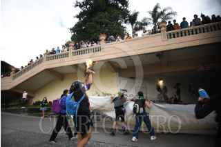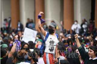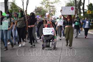 XALAPA, VERACRUZ, 28SEPTIEMNRE2022.- Escoltadas por policías, feministas marcharon para conmemorar el Día Internacional por el Derecho al Aborto. Durante la caminata, las mujeres realizaron pintas en paredes y también hubo altercados con integrantes de la prensa, que no pasaron a mayores. Culminaron en la plaza Lerdo donde hicieron la petición de no estigmatizar el aborto y no señalar a quienes lo lleven a cabo. FOTO: YERANIA ROLÓN/CUARTOSCURO.COM