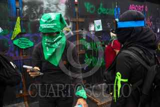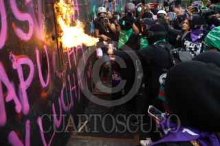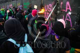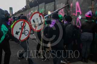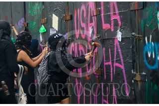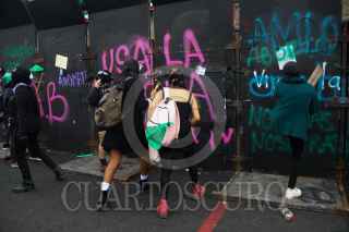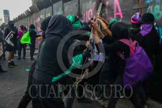 CIUDAD DE MÉXICO.28SEPTIEMBRE2022.- Diversos colectivos Feministas pretendieron derribar las vallas que protegen Palacio Nacional, está tarde al concluir la marcha Pro Aborto. FOTO: VICTORIA VALTIERRA/CUARTOSCURO.COM