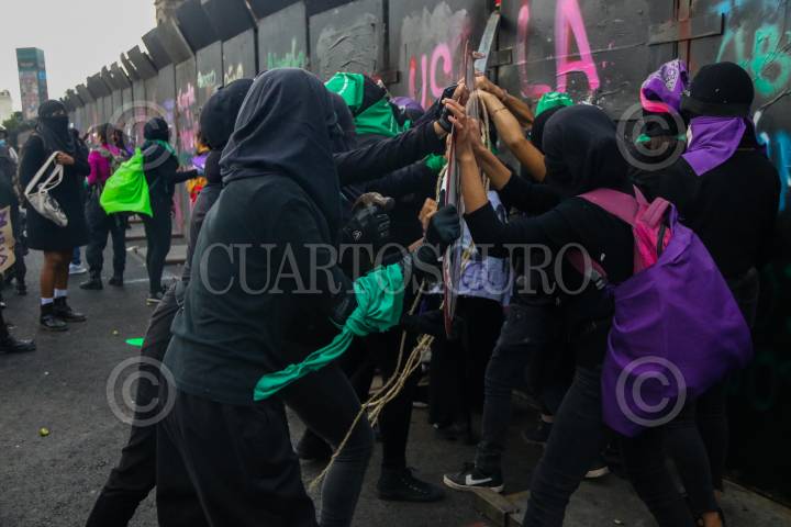 CIUDAD DE MÉXICO.28SEPTIEMBRE2022.- Diversos colectivos Feministas pretendieron derribar las vallas que protegen Palacio Nacional, está tarde al concluir la marcha Pro Aborto. FOTO: VICTORIA VALTIERRA/CUARTOSCURO.COM