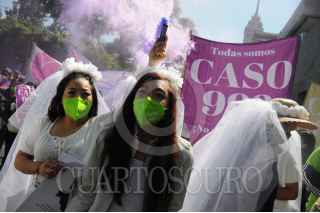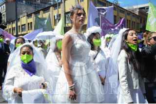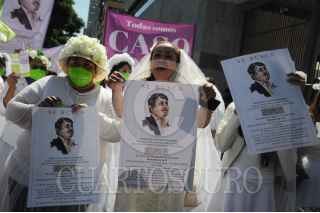 CIUDAD DE MÉXICO, 29SEPTIEMBRE2022.- Esta mañana un grupo de mujeres vestidas de novia se manifestaron afuera de los Juzgados de lo Familiar para protestar en contra de los jueces que han ayudado a ocultar a los deudores de las pensiones para sus hijos y familias. FOTO: DANIEL AUGUSTO /CUARTOSCURO.COM