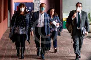 CIUDAD DE MÉXICO, 29SEPTIEMBRE2022.- Carlos Marín Beristaín, Claudia Paz y Paz, Ángela María Buitrago y Francisco Cox Vial, todos integrantes del Grupo Interdisciplinario de Expertos Internacionales (GIEI), expusieron las nuevas investigaciones y resoluciones del tercer informe sobre el caso Ayotzinapa, una vez que la Comisión para la Verdad por el Caso Ayotzinapa (encabezada por Alejandro Encinas, subsecretario de Derechos Humanos) rindiera detalles de su respectiva investigación. Las y los expertos declararon que hay evidencia contundente respecto a la relaciones entre autoridades y el crimen organizado. De igual manera, establecieron que no existe una relación con la Fiscalía General de la República (FGR) pues el fiscal Alejandro Gertz Manero no se ha dado a la tarea de recibirles. Exigieron que las autoridades no quiten el dedo del renglón pues a pesar de establecer que los jóvenes fueron asesinado, aún continúan desaparecidos. FOTO: GALO CAÑAS/CUARTOSCURO.COM