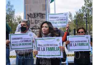 TOLUCA, ESTADO DE MÉXICO, 29SEPTIEMBRE2022.- Integrantes de la Coalición por la Vida, la Familia y las libertades en el Estado de México (COFIVAL Edoméx) acudieron a la Cámara de Diputados local a expresar su postura de rechazo acerca de la aprobación en comisiones legislativas del Matrimonio Igualitario, exigiendo a los diputados que protejan y resguarden a la familia como institución. FOTO: CRISANTA ESPINOSA AGUILAR /CUARTOSCURO.COM