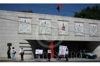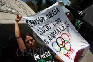 MÉXICO, D.F., 13FEBRERO2007.- Un grupo de activistas de AnimaNaturalis protestaron frente a la Embajada de China en México por el maltrato animal que ocurre en el país asiático, por lo que rechazaron que organice los próximos Juegos Olímpicos. FOTO: ISAAC ESQUIVEL/CUARTOSCURO.COM