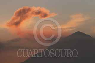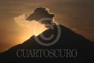 JUCHITEPEC, ESTADO DE MÉXICO, 02COTUBRE2022.- El Centro Nacional de Prevención de Desastres (CENAPRED) en el ultimo reporte sobre la actividad del volcán Popocatépetl informo que en las pasadas 24 horas ha tenido 143 exhalaciones, acompañadas de vapor de agua, gases volcánicos y ligeras cantidades de ceniza. La imagen tomada desde la cima del volcán Huipilo de 2803 msnm durante el amanecer. FOTO: MARGARITO PÉREZ RETANA / CUARTOSCURO.COM