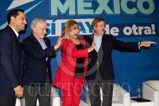 CIUDAD DE MÉXICO, 02OCTUBRE2022.- Mauricio Vila, gobernador de Yucatán; Santigo Creel, presidente de la Cámara de Diputados; Marú Campos, gobernadora de Chihuahua; Juan Carlos Romero Hicks, diputado federal; Marko Córtes, dirigente nacional del PAN; Jorge Romero Herrera, diputado de la Ciudad de México; Mariana Gómez del Campo; Enrique Vargas, aspirante panistas al la gubernatura del Edomex, y Gustavo de Hoyos, participaron en el los Foros por un México Mejor ¡Sí hay de otra!, en el WTC. FOTO: MOISÉS PABLO/CUARTOSCURO.COM