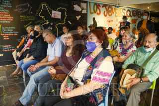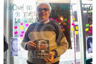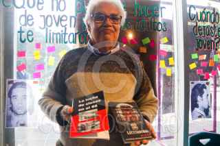 CIUDAD DE MÉXICO. 02OCTUBRE2022.- Pedro Castillo, autor de varios libros de tema de la matanza de estudiantes en Tlatelolco en 1968, ofreció una plática en el Centro cultural de la UNAM. Junto con él Alejandro Zenteno. FOTO: VICTORIA VALTIERRA/CUARTOSCURO.COM