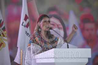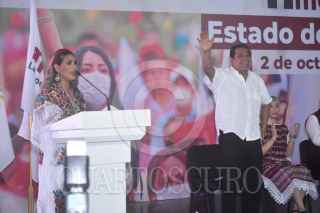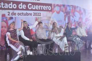 CHILPANCINGO, GUERRERO, 02OCTUBRE2022.- La gobernadora Evelyn Salgado Pineda señaló que el partido Morena está en un momento «crucial» para cerrar filas y consolidar la unidad, en tanto que el dirigente estatal, Jacinto González Varona, dijo que a 11 años de fundación, tienen que cuestionarse ¿cuál es el rumbo de Morena? Militantes del partido, en su mayoría simpatizantes del senador Félix Salgado Macedonio, diputados, senadores, regidores y alcaldes se congregaron en el teatro María Luisa Ocampo, en Chilpancingo, para celebrar los 11 años de la fundación de Morena. En su discurso, la gobernadora Evelyn Salgado dijo que lo que quieren en Morena es la consolidación y cerrar filas a fin de lograr unidad. FOTO: DASSAEV TÉLLEZ ADAME/CUARTOSCURO.COM