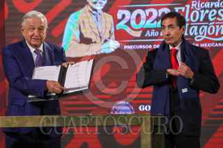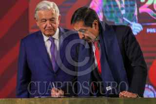 CIUDAD DE MÉXICO, 03OCTUBRE2022.- Andrés Manuel López Obrador, Presidente de México, y Rogelio Ramírez de la O, secretario de Hacienda y Crédito Público, encabezaron la firma del convenio para mantener en.poco más de 1000 pesos con un grupo de empresarios, esto con el objetivo de que ya no suba la inflación en el país. En el encuentro estuvo también presente Tatiana Clouthier, secretaria de Economía, y Ricardo Sheffield Padilla, titular de la Profeco. FOTO: MOISÉS PABLO/CUARTOSCURO.COM