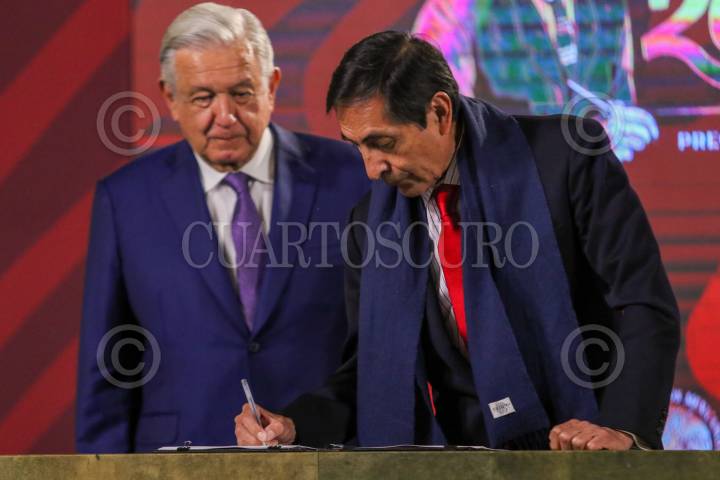 CIUDAD DE MÉXICO, 03OCTUBRE2022.- Andrés Manuel López Obrador, Presidente de México, y Rogelio Ramírez de la O, secretario de Hacienda y Crédito Público, encabezaron la firma del convenio para mantener en.poco más de 1000 pesos con un grupo de empresarios, esto con el objetivo de que ya no suba la inflación en el país. En el encuentro estuvo también presente Tatiana Clouthier, secretaria de Economía, y Ricardo Sheffield Padilla, titular de la Profeco. FOTO: MOISÉS PABLO/CUARTOSCURO.COM
