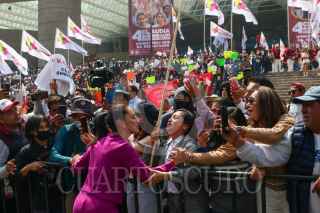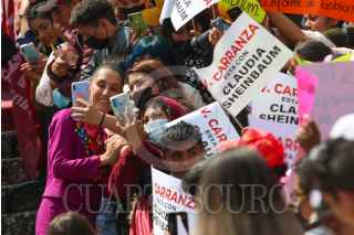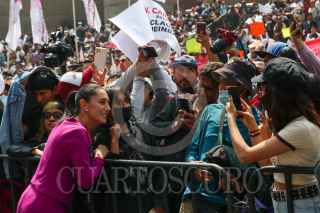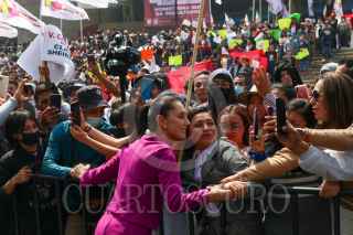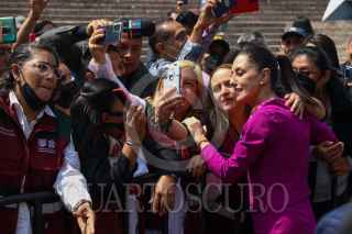 CIUDAD DE MÉXICO, 03OCTUBRE2022.- Claudia Sheinbaum Pardo, Jefa de Gobierno, saluda a las personas que la esperaban en el Auditorio Nacional, en donde la morenista y aspirante a candida presidencial presentó su Cuarto Informe de Gobierno. FOTO: MOISÉS PABLO/CUARTOSCURO.COM