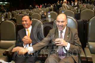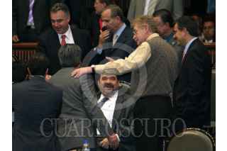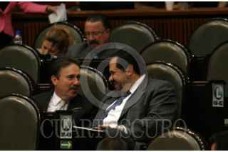 MÉXICO, D.F., 13FEBRERO2007.- Los diputados priistas Joel Ayala Almeida y Cesar Camacho Quiroz, durante las actividades en la sesión de la Cámara de Diputados. FOTO: MOISÉS PABLO/CUARTOSCURO.COM
