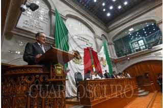 TOLUCA, ESTADO DE MÉXICO, 03OCTUBRE2022.- Luis Felipe Puente Espinoza Secretario General de Gobierno compareció ante el pleno de la LXI Legislatura local como parte de la glosa del 5to Informe de Labores del Gobernador Alfredo del Mazo Maza. FOTO: CRISANTA ESPINOSA AGUILAR /CUARTOSCURO.COM