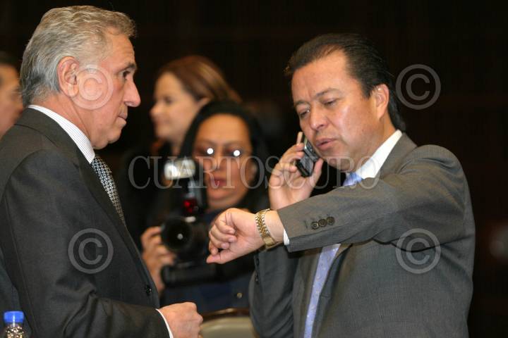 MÉXICO, D.F., 13FEBRERO2007.- Los diputados priistas Joel Ayala Almeida y Cesar Camacho Quiroz, durante las actividades en la sesión de la Cámara de Diputados. FOTO: MOISÉS PABLO/CUARTOSCURO.COM