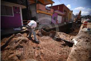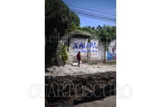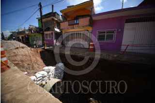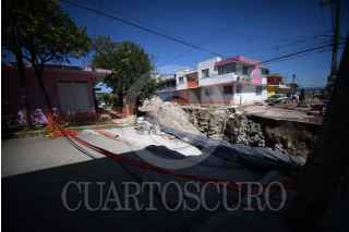 XALAPA, VERACRUZ, 03OCTUBRE2022.- Las banquetas de la avenida Ciudad de las Flores y José de Jesús Núñez se derrumbaron debido al reblandecimiento del piso ocasionado por las lluvias y a la rehabilitación de la calle para introducir tubos de drenaje. Los trabajos de reconstrucción se agilizaron para evitar tragedias. FOTO: YERANIA ROLÓN/CUARTOSCURO.COM