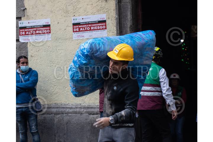 CIUDAD DE MÉXICO, 05OCTUBRE2022.- Vecinos y afectados ayudan a sacar cosas de la vecindad que se derrumbo el día de ayer al rededor de las 10:30 de la noche ubicada en Justo Sierra 27. Afectados se mantienen en la zona y piden apoyo ante la situación, también hubo 2 heridos que se mantienen estables. FOTO: ANDREA MURCIA /CUARTOSCURO.COM