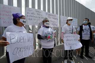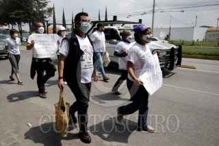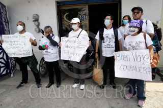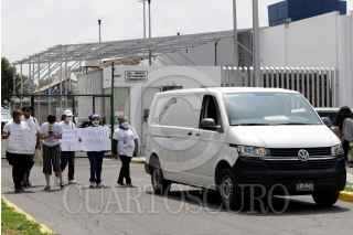 PUEBLA, PUEBLA, 5OCTUBRE2022.- Integrantes del Colectivo Voz de los desaparecidos acompañaron la carroza con el cuerpo de Esmeralda Gallardo a la salida del SEMEFO. Esmeralda fue asesinada la mañana de ayer en la colonia Villa Frontera y pertenecía al colectivo por la búsqueda de su hija desaparecida en 2021. FOTO: MIREYA NOVO/CUARTOSCURO.COM