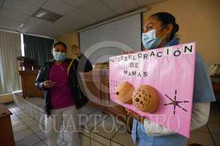 TOLUCA, ESTADO DE MÉXICO, 05OCTUBRE2022.- La Clínica Multidisciplinaria de Salud de la UAEMéx se suma a las actividades en el mes de la Lucha contra el Cáncer de Mama, en busca de visibilizar la enfermedad y hacer conciencia en la población acerca que una detección a tiempo puede salvar una vida, todos los miércoles de octubre se realizará el Taller de autoexploración mamaria a las 10 de la mañana, totalmente gratuito y está abierto a la población en general. Las mujeres al no estar habituadas a realizar la autoexploración por miedo o desinformación no lo realizan mes con mes, y esta está recomendada a partir de los 20 años de edad. La incidencia de cáncer de mama a nivel mundial en hombres es baja pero también es importante que se autoexploren para descartar esta posibilidad. FOTO: CRISANTA ESPINOSA AGUILAR /CUARTOSCURO.COM