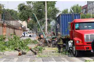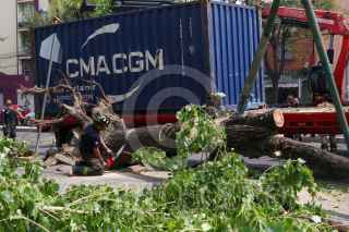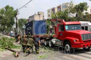 CIUDAD DE MÉXICO, 05OCTUBRE2022.- Bomberos retiraron un árbol que se cayó sobre la caja de un tráiler que estaba estacionado en Dr. Vertiz y Dr. Velasco, colonia Doctores. FOTO: MOISÉS PABLO/CUARTOSCURO.COM