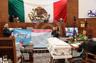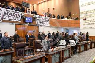 ZACATECAS, ZACATECAS, 05OCTUBRE2022.- Adolfo Marín Marín, secretario de Seguridad Pública del Estado, compareció ante el Congreso del Estado, como parte de la glosa por el Primer Informe de Gobierno de David, Monreal Ávila, gobernador del Estado. Durante su comparecencia fue duramente criticado por la actual estrategia de seguridad, a demás de manifestaciones por parte de diputados de oposición, en el recinto por la cantidad de asesinatos en el periodo como responsable de la seguridad en la entidad. FOTO: JULIAN GONZÁLEZ /CUARTOSCURO.COM