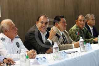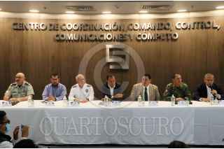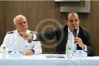 CUERNAVACA, MORELOS, 06OCTUBRE2022.- Conferencia de prensa encabezada por el gobernador Cuauhtémoc Blanco y titulares de las dependencias encargadas de la seguridad publica, sobre el tema del asesinato de la diputada local del partido Morelos Progresa, perpetrado la tarde de ayer en el estacionamiento de una farmacia ubicada al norte de la capital. Acompañaron al mandatario, el secretario de Gobierno, Samuel Sotelo, el alcalde de la capital, José Luis Urióstegui, el fiscal de Justicia, Uriel Carmona, el comisionado de Seguridad Publica, José Antonio Ortiz Guarneros y el comandante de la Primera Región Militar D.E.M. Ernesto José Zapata. FOTO: MARGARITO PÉREZ RETANA / CUARTOSCURO.COM