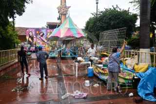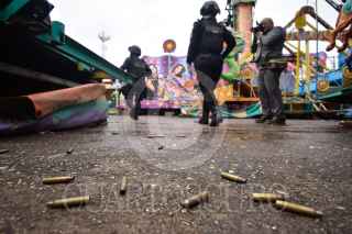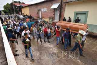 SAN MIGUEL TOTOLOAPAN, GUERRERO, 06OCTUBRE2022.- Al menos 20 muertos confirmados tras ataque armado al ayuntamiento municipal de San Miguel Totolapan, donde perdieran la vida el alcalde Conrado Mendoza Almeda y su papá, dos veces alcalde del mismo municipio, Juan Mendoza Acosta. Casi 24 horas después de los hechos, arribo personal de la Fiscalía General del Estado de Guerrero (FGE) para realizar las diligencias correspondientes y hacer el levantamiento de cientos de casquillos que quedaron en las calles donde se registraron los ataques, además del alcalde en funciones y su padre, se confirmó que el Secretario de Seguridad Pública, escoltas del alcalde, personal del ayuntamiento y miembros del 'Movimiento por la Paz' de este municipio ubicado en la región de la Tierra Caliente de Guerrero, también perdieron la vida. En el panteón municipal, ya han comenzado a sepultar a los caídos en este ataque armado, pero a diferencia de los sepultados, el cuerpo del alcalde y del exalcalde, aún permanecen en las instalaciones del Servicio Médico Forense (SEMEFO) ubicado en la ciudad de Iguala, por lo que se espera que hasta la tarde del día viernes sean sepultados. Luego de los hechos, vendedores y operadores de juegos mecánicos, comenzaron a levantar sus puestos que habían instalado para los festejos de la feria en honor a San Miguel Arcángel, la cual culminaría el próximo día sábado 8 de octubre, pero ante el temor y la ola de violencia que se vive en estos momentos los locatarios de esta feria han optado por retirarse. Además de esto, las calles lucen prácticamente vacías, la mayoría de los comercios se mantuvieron cerrados, otros abrieron menos de mediodía y en el mercado municipal, los comerciantes indicaron que ante el miedo, las ventas eran bajas. FOTO: DASSAEV TÉLLEZ ADAME/CUARTOSCURO.COM