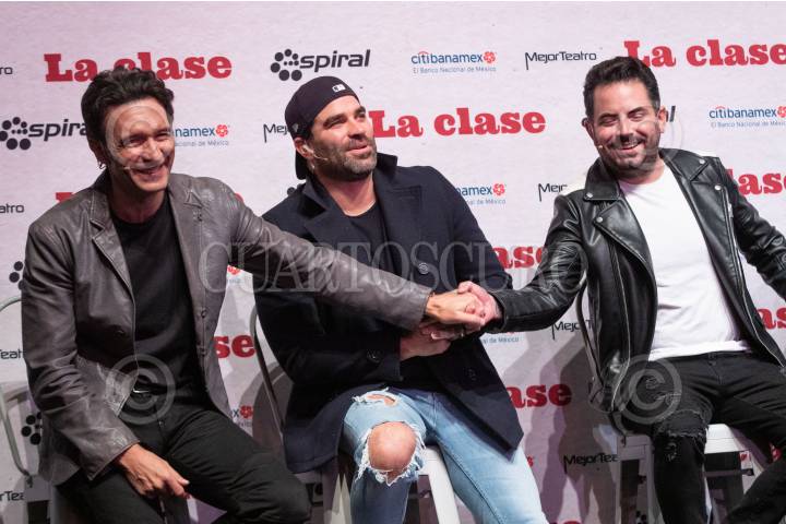 CIUDAD DE MÉXICO, 06OCTUBRE2022.- Morris Gilbert, productor; Xavier López Miranda, productor; Leonardo de Lozanne, actor; Alejandro Nones, actor; José Eduardo Derbez, actor; Miguel Burra, actor, y Manuel González Gil, director, dieron detalle de la obra "La Clase", la cuAl se estrenará el 21 de octubre en el Teatro México. FOTO: MOISÉS PABLO/CUARTOSCURO.COM