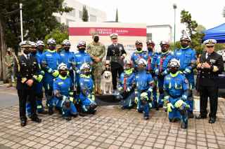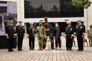 CIUDAD DE MÉXICO, 06OCTUBRE2022.- La Secretaría de Marina–Armada de México informa que hoy, como reconocimiento a su trayectoria en labores de rescate durante su servicio activo en esta Institución, se llevó a cabo la develación de la escultura del elemento canino “Frida”, en las instalaciones de esta Secretaría, en la Ciudad de México. Citado evento fue presidido por el Secretario de Marina, el Almirante José Rafael Ojeda Durán, en compañía de la Coordinadora Nacional de Protección Civil, la Licenciada Laura Velázquez Alzúa, así como de autoridades navales. Asimismo, se contó con la presencia “Frida”, quien actualmente está al cuidado del personal asignado al Subgrupo de Control Canino, perteneciente al Estado Mayor General de la Armada; así como de binomios caninos, y personal de la Unidad Naval de Protección Civil (UNAPROCIV). FOTO: SECRETARÍA DE MARINA/CUARTOSCURO.COM