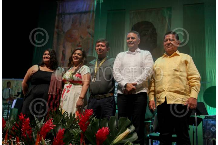 VERACRUZ, VERACRUZ. 06OCTUBRE2022.- Se inauguró el vigésimo sexto Festival Internacional Afrocaribeño 2022 en el teatro de la Reforma, dónde se hizo entrega de la medalla "Gonzalo Aguirre Beltrán" al Director del Museo de Antropología de Xalapa, Alfredo Delgado Calderón, por su destacada labor como arqueólogo y antropólogo social. La Orquesta Universitara de Música Popular de la Universidad Veracruzana fue la encargada de presentar el concierto de apertura de este festival. FOTOS: DENISSE HERNÁNDEZ/CUARTOSCURO.COM