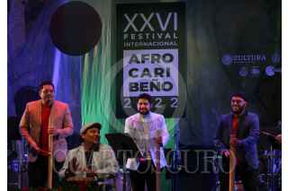 VERACRUZ, VERACRUZ. 06OCTUBRE2022.- Se inauguró el vigésimo sexto Festival Internacional Afrocaribeño 2022 en el teatro de la Reforma, dónde se hizo entrega de la medalla "Gonzalo Aguirre Beltrán" al Director del Museo de Antropología de Xalapa, Alfredo Delgado Calderón, por su destacada labor como arqueólogo y antropólogo social. La Orquesta Universitara de Música Popular de la Universidad Veracruzana fue la encargada de presentar el concierto de apertura de este festival. FOTOS: DENISSE HERNÁNDEZ/CUARTOSCURO.COM