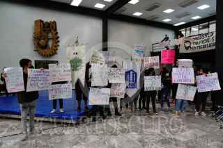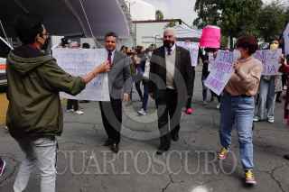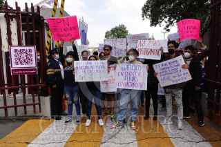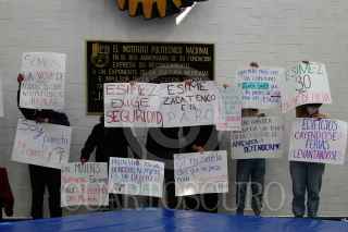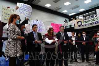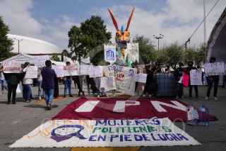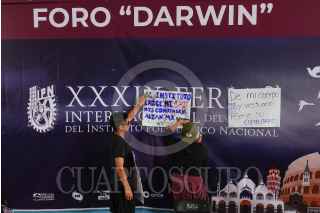 CIUDAD DE MÉXICO, 07OCTUBRE2022.- Ana Lilia Coria Páez, secretaria de Servicios Educativos, José Luis Castañeda, director de bibliotecas y publicaciones y Edmundo Hernández, director de difusión del IPN, encabezaron la inauguración de la XXXIX Feria Internacional del Libro del Instituto Nacional Politécnico en el Auditorio Alejo Peralta del Centro Cultural Jaime Torres Bodet en Zacatenco. Cabe destacar que durante el acto protocolario alumnos del instituto se manifestaron con lonas y pancartas, así mimo realizaron diversos recorridos por la feria cultural con el objetivo de exponer sus demandas. FOTO: ROGELIO MORALES /CUARTOSCURO.COM