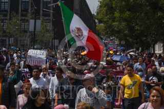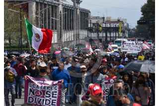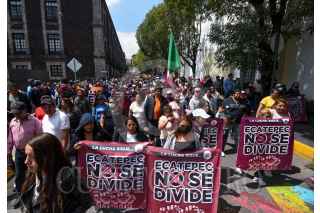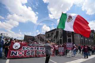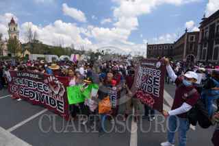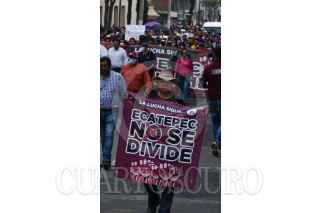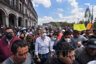 TOLUCA, ESTADO DE MÉXICO, 07OCTUBRE2022.- Fernando Vilchis alcalde de Ecatepec acompañado por habitantes que conformaron el Frente de Resistencia para evitar el despejo de 469 hectáreas del territorio municipal, marcharon en la ciudad de Toluca y sostuvieron una reunión con la Comisión de Límites Territoriales del Estado de México y sus Municipios. FOTO: CRISANTA ESPINOSA AGUILAR /CUARTOSCURO.COM