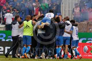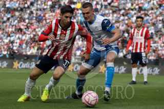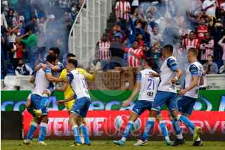 PUEBLA, PUEBLA, 09OCTUBRE2022.- El Puebla empató a un gol con las Chivas del Guadalajara, en tiempo regular en el partido de repechaje de la Liga MX. Los goles del empate fueron de Martín Barragán (Puebla) y Carlos Cisneros (Guadalajara). La Franja del Puebla al final se impuso 5-4 en tanda de penales, con este resultado avanzan a la llamada fiesta grande del fútbol mexicano. FOTO: MIREYA NOVO/ CUARTOSCURO.COM