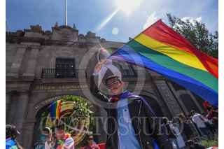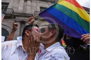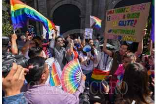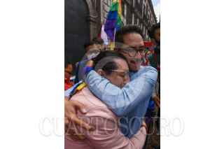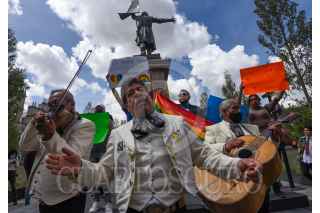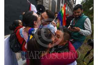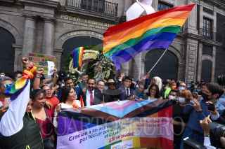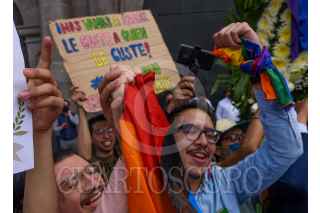 TOLUCA, ESTADO DE MÉXICO, 11OCTUBRE2022.- Se aprueba en el Pleno de la LXI Legislatura del Estado de México con 50 votos a favor el Matrimonio Igualitario, aprobándose las reformas al Código Civil de la entidad mexiquense, integrantes de la comunidad LGBTTTIQ+ celebraron al exterior del recinto legislativo la aprobación acompañados de mariachi. FOTO: CRISANTA ESPINOSA AGUILAR /CUARTOSCURO.COM