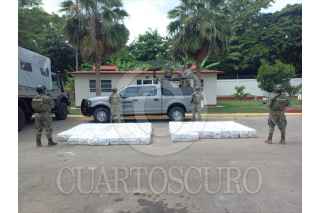 BACALAR, QUINTANA ROO, 11OCTUBRE2022.- Elementos de la Secretaría de Marina realizaron el decomiso de alrededor de 1800 kilogramos de presunta droga abordó de una embarcación Punta Pulticub. La presunta carga ilícita y la embarcación fueron puestas a disposición de la Fiscalía General de la República (FGR), para integrar la carpeta de investigación correspondiente. FOTO: SEMAR/CUARTOSCURO.COM