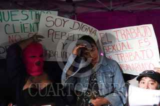 CIUDAD DE MÉXICO, 11OCTUBRE2022.- Trabajadoras Sexuales que laboran en la vía pública en la capital y la Red de Trabajo Sexual que pertenecen a Brigada Callejera en Apoyo a la Mujer Elisa Martínez A.C, protestaron afuera de la Cámara de Diputados para expresar su inconformidad y exigir a la diputada María Clemente García que se cambie la iniciativa de una ley que regule su oficio, en donde incluya sus voces porque muchas de ellas no cuentan con un correo para registrarse y puedan asistir a un parlamento abierto en la Cámara Baja. FOTO: GRACIELA LÓPEZ /CUARTOSCURO.COM