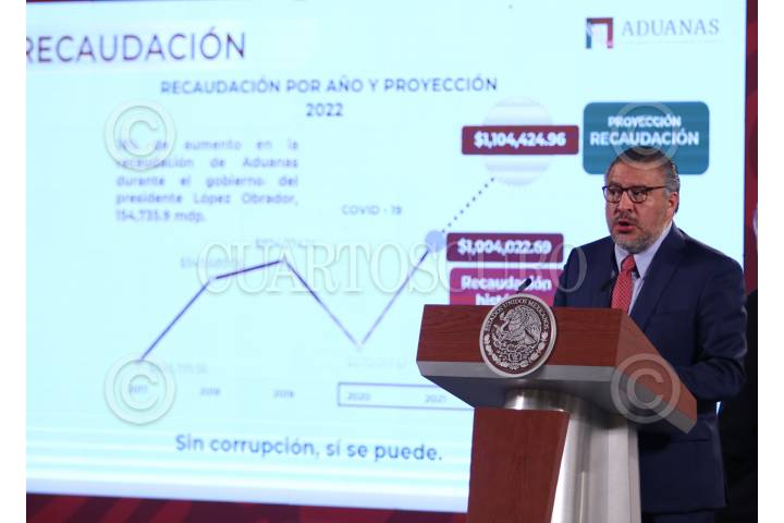 CIUDAD DE MÉXICO, 12OCTUBRE2022.- Andrés Manuel López Obrador, presidente de México acompañado por Ana Elizabeth García; Adán Augusto López Hernández, secretario de Gobernación; Luis Cresencio Sandoval González, secretario de la Defensa Nacional; José Rafael Ojeda Durán, secretario de Marina y Horacio Duarte Olivares, titular de la Agencia Nacional de Aduanas de México (ANAM) durante la conferencia matutina en Palacio Nacional. FOTO: ANDREA MURCIA / CUARTOSCURO. COM