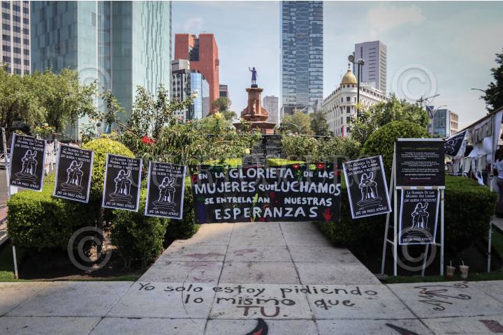 CIUDAD DE MÉXICO, 12OCTUBRE2022.- Mujeres y familiares de víctimas de desaparición forzada y feminicidio así como colectivas feministas y sobrevivientes mantienen plantón de guardia hasta resolver el acuerdo de mantener la estatua de la mujer colocada por colectivas hace un año. Ayer hubo junta con representantes del Gobierno y se acordó que quizás podrían convivir ambas estatuas juntas. FOTO: ANDREA ALEJANDRA/ CUARTOSCURO.COM