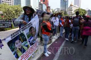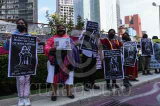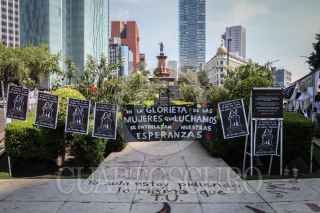 CIUDAD DE MÉXICO, 12OCTUBRE2022.- Mujeres y familiares de víctimas de desaparición forzada y feminicidio así como colectivas feministas y sobrevivientes mantienen plantón de guardia hasta resolver el acuerdo de mantener la estatua de la mujer colocada por colectivas hace un año. Ayer hubo junta con representantes del Gobierno y se acordó que quizás podrían convivir ambas estatuas juntas. FOTO: ANDREA ALEJANDRA/ CUARTOSCURO.COM