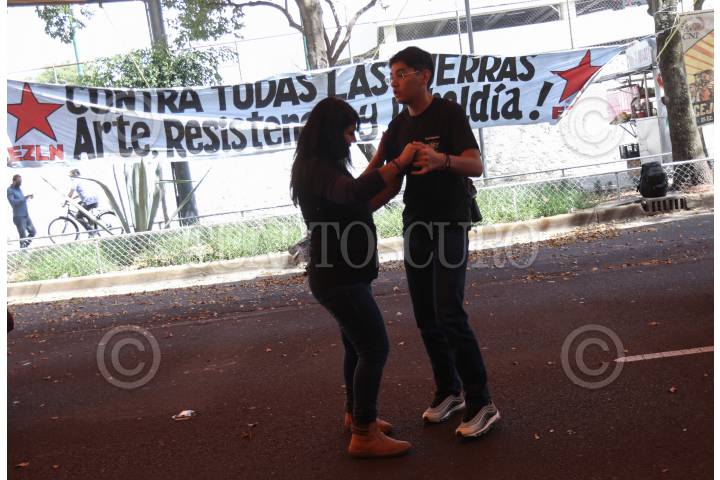 CIUDAD DE MÉXICO, 12OCTUBRE2022.- Como parte de la acción global contra la Militarización y el segundo aniversario de la toma del INPI integrantes del Concejo indígena de Gobierno y comunidad otomi realizaron mitin, baile y comida. FOTO: ANDREA MURCIA /CUARTSOCURO.COM