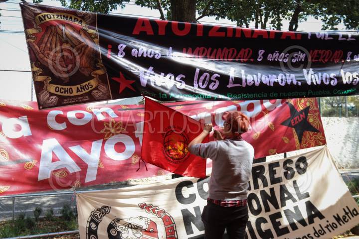 CIUDAD DE MÉXICO, 12OCTUBRE2022.- Como parte de la acción global contra la Militarización y el segundo aniversario de la toma del INPI integrantes del Concejo indígena de Gobierno y comunidad otomi realizaron mitin, baile y comida. FOTO: ANDREA MURCIA /CUARTSOCURO.COM