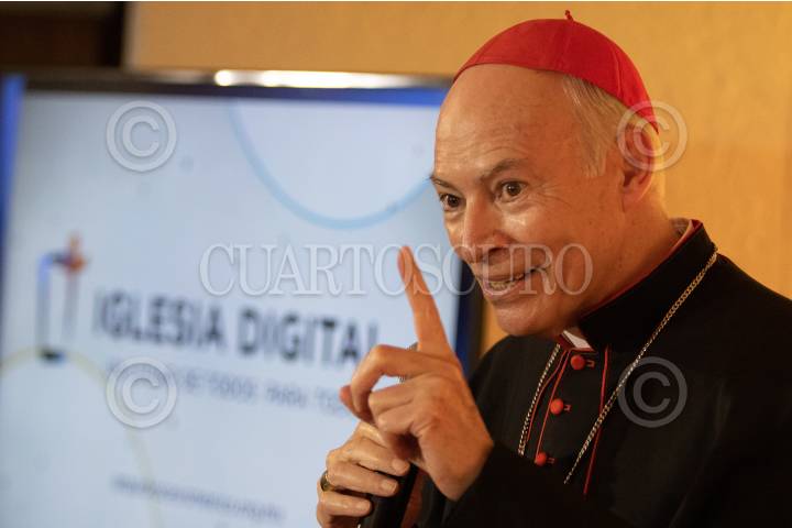 CIUDAD DE MÉXICO, 12OCTUBRE2022.- Ricardo Salinas Pliego, Presidente del Grupo Salinas; Carlos Aguiar Retes, Arzobispo Primado de México; Ninfa Salinas Sada, presidenta de Fundación Salinas, y el periodista Jorge Zarza, presentaron la nueva App "Iglesia Digital. Un lugar para todos", en la cual la gente podrá acercarse a los servicios que ofrece la iglesia a través del uso del Internet, en la Basílica de Guadalupe. FOTO: MOISÉS PABLO/CUARTOSCURO.COM
