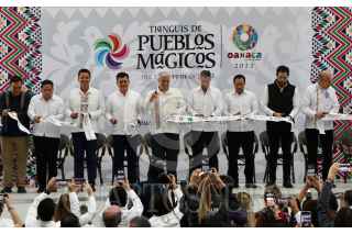 SANTA LUCÍA DEL CAMINO, OAXACA 12OCTUBRE2022.- El secretario de Turismo del gobierno federal, Miguel Torruco Márquez y el gobernador de Oaxaca, Alejandro Murat Hinojosa, encabezaron la inauguración del 4º Tianguis de Pueblos Mágicos en el Centro Cultural y de Convenciones de Oaxaca. El encuentro que se realiza del 11 al 14 de octubre, reúne a 2200 expositores de los 132 pueblos mágicos de México, con la finalidad de promover, difundir y comercializar estos destinos turísticos, además se desarrolla un programa académico, cultural y gastronómico. FOTO: CAROLINA JIMÉNEZ/CUARTOSCURO.COM