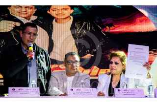 CIUDAD DE MÉXICO, 12OCTUBRE2022.- Bufetes de abogados y representantes de artistas, ofrecieron una conferencia de prensa debido al uso lucrativo y plagio de canciones así como uso de nombre de grupos famosos, en la conferencia de prensa de esta tarde en un conocido lugar de espectaculos. Salvador Guerra, Ana María Navarro y Juan Fernando Medina, encabezaron el encuentro con medios. FOTO: VICTORIA VALTIERRA/CUARTOSCURO.COM