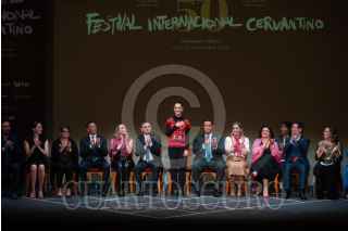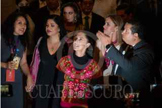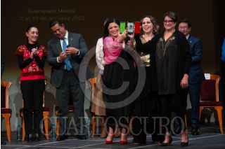 GUANAJUATO, GUANAJUATO, 12OCTUBRE2022.- Claudia Sheibaum, jefa de Gobierno de la Ciudad de México; Alejandra Frausto, secretaria de Cultura Federal; Diego Sinhue Rodríguez, gobernador de Guanajuato; Luis Felipe Guerrero Agripino, rector de la Universidad de Guanajuato; Alejandro Navarro, presidente municipal de Guanajuato; Claudia Curiel de Icaza, secretaria de Cultura de la Ciudad de México, y Mariana Aymerich Ordoñez, directora general del Festival Internacional Cervantino (FIC), encabezaron la inauguración del 50 Festival Internacional Cervantino (FIC) realizado en el Teatro Juárez. FOTO: MARIO JASSO/CUARTOSCURO.COM