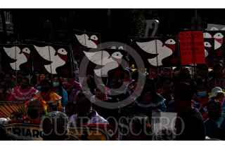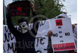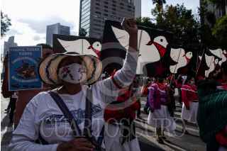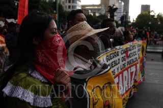 CIUDAD DE MÉXICO, 11OCTUBRE2022.- Organizaciones sociales, población civil y colectivos de pueblos originarios en contra de la militarización y de la reforma a la ley de la Guardia Nacional (GN) marcharon del Ángel de la Independencia al Zócalo capitalino para exigir al gobierno la salida de los militares de las calles. FOTO: GALO CAÑAS/CUARTOSCURO.COM