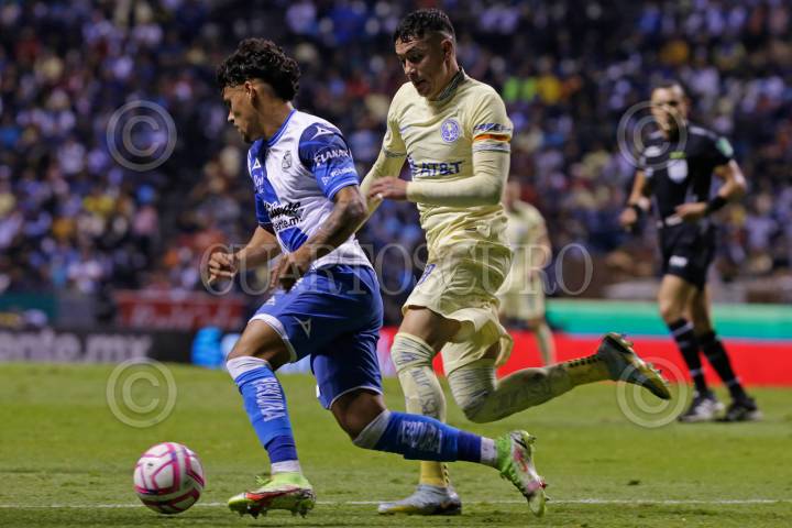 PUEBLA, PUEBLA, 12OCTUBRE2022.- Puebla cae 6-1 ante el América, en el partido de ida de los Cuartos de Final de la Liga MX, en l Estadio Cuauhtémoc. El tanto poblano fue de Jordi Cortizo, mientras que por los americanistas anotaron Diego Valdés, Henry Martín, Alejandro Zendejas, Brian Rodríguez y Federico Viñas. FOTO: MIREYA NOVO/ CUARTOSCURO.COM