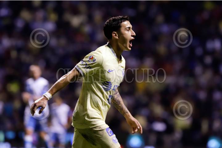 PUEBLA, PUEBLA, 12OCTUBRE2022.- Puebla cae 6-1 ante el América, en el partido de ida de los Cuartos de Final de la Liga MX, en l Estadio Cuauhtémoc. El tanto poblano fue de Jordi Cortizo, mientras que por los americanistas anotaron Diego Valdés, Henry Martín, Alejandro Zendejas, Brian Rodríguez y Federico Viñas. FOTO: MIREYA NOVO/ CUARTOSCURO.COM