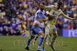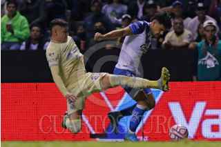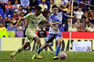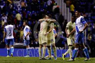 PUEBLA, PUEBLA, 12OCTUBRE2022.- Puebla cae 6-1 ante el América, en el partido de ida de los Cuartos de Final de la Liga MX, en l Estadio Cuauhtémoc. El tanto poblano fue de Jordi Cortizo, mientras que por los americanistas anotaron Diego Valdés, Henry Martín, Alejandro Zendejas, Brian Rodríguez y Federico Viñas. FOTO: MIREYA NOVO/ CUARTOSCURO.COM