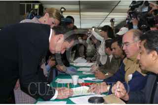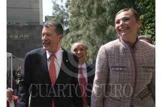 MEXICO, D.F. 18FEBRERO2007.- Enrique Jackson, aspitante a la presidencia nacional del PRI y Sara Latife, compañera de Formula a su llegada a la sede nacional del PRI donde acudieron a emitir su voto. FOTO: NELLY SALAS/CUARTOSCURO.COM