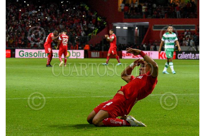TOLUCA, ESTADO DE MÉXICO, 13OCTUBRE2022.- Los Diablos de Toluca consiguieron la victoria ante la escuadra de Santos Laguna con un marcador final 4-3 en el partido de ida de Cuartos de Final del Torneo Apertura 2022 de la Liga MX. FOTO: CRISANTA ESPINOSA AGUILAR/ CUARTOSCURO.COM